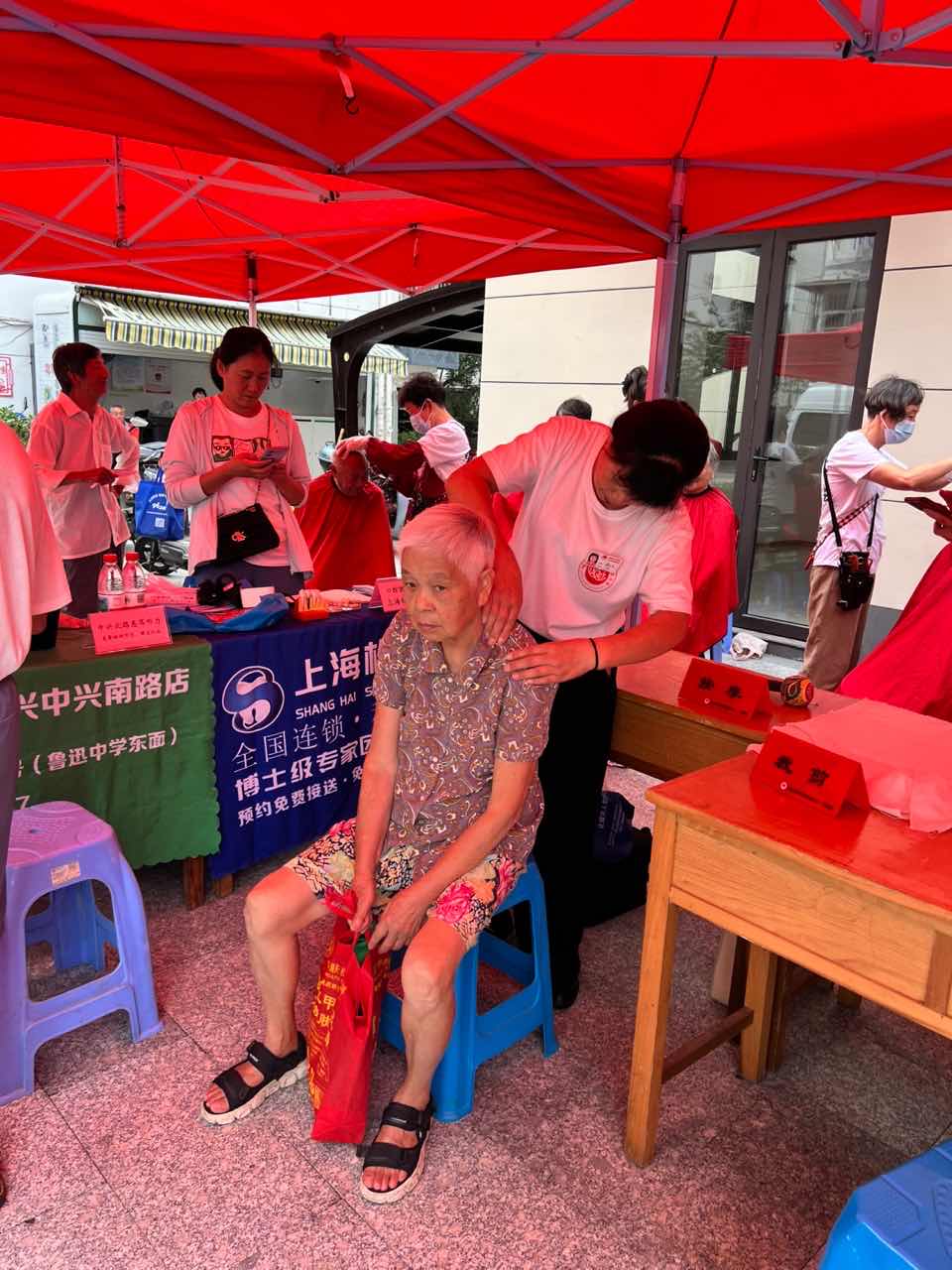 炉峰善天下志愿服务队和炉峰益启爱志愿服务队的服务摊位前排起了长龙。技艺娴熟的理发师们根据居民需求,精心修剪出一个个清爽利落的发型;按摩服务缓解了老人们肩颈腰腿的酸痛;测量血压、剪指甲这些看似微小的服务,却体现了无微不至的关怀。此外,磨刀、义卖等特色服务也极大地方便了居民的日常生活,让公益与生活紧密结合。